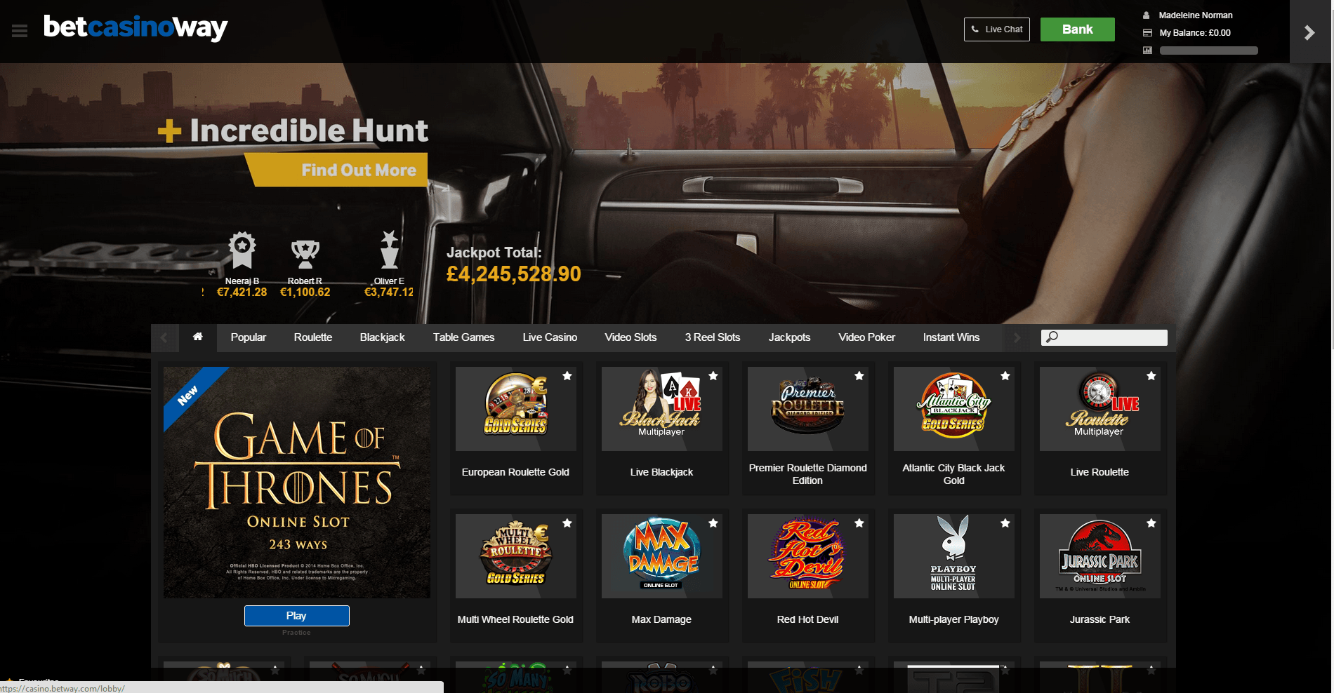 Игровое казино онлайн «Betway» имеет свою бонусную систему.