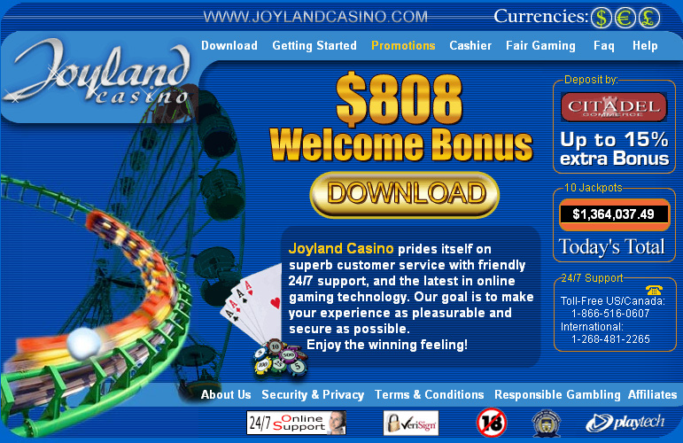 Виртуальный игорный дом «Joyland» основан в 2003 году. Имеет лицензию комиссии по азартным развлечениям в Канаваке, звучит это так Kahnawake Gaming Commission.