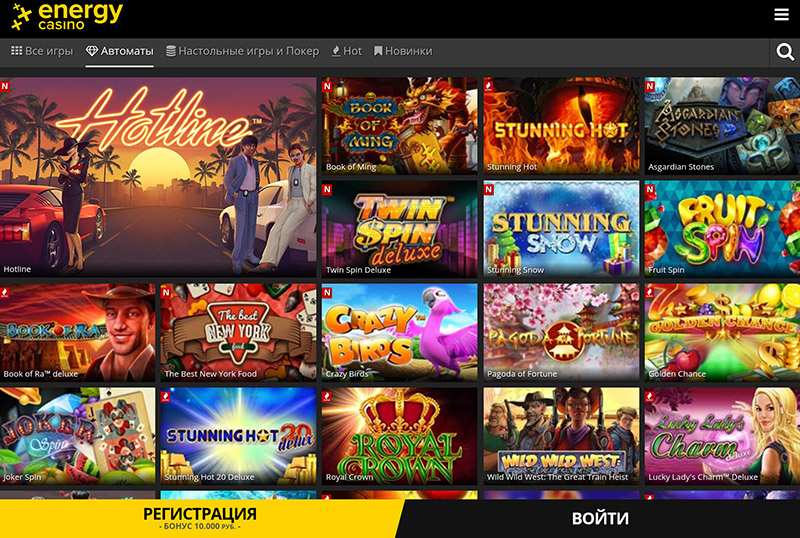Если говорить о самом сайте casino Energy, то его дизайн сделан со вкусом и весьма аккуратно. Графика в основном темная, что не отвлекает внимание игроков от нужной информации.