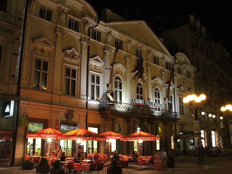 Это респектабельное заведение считается одним из старейших во всей Чехии. Если будете в Праге и захотите его посетить, то отправляйтесь на Прикоп, где «Саварин» вы легко узнаете, ведь его здание выполнено в стиле барокко и сразу же бросается в глаза. Воздвигнуто оно было, кстати, еще в середине восемнадцатого века. Внутри казино смотрится не менее роскошно. Здесь вы можете играть во всевозможные азартные игры: несколько видов рулеток, покер, блэкджек. Есть много слотов на любой вкус и бюджет. Клиентов угощают бесплатными изысканными напитками. Игровой валютой могут быть чешские кроны или евро. Ко внешнему виду посетителей каких-то особых требований нет. Платить за вход не нужно.