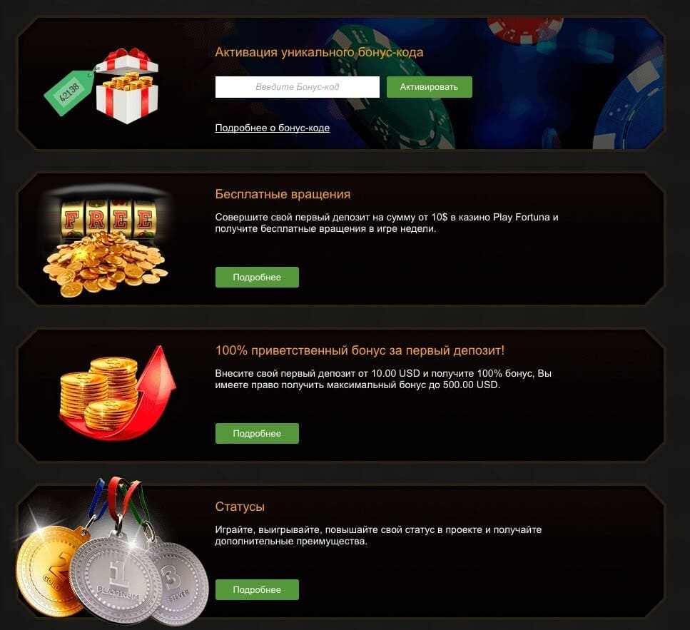 Следует подчеркнуть, что это игорное заведение каждое воскресенье на протяжении 27ми недель наделяет самых везучих из своих новичков отдельным бонусом, который равен полной сумме введенных средств при условии, что она не будет больше 100 долларов.