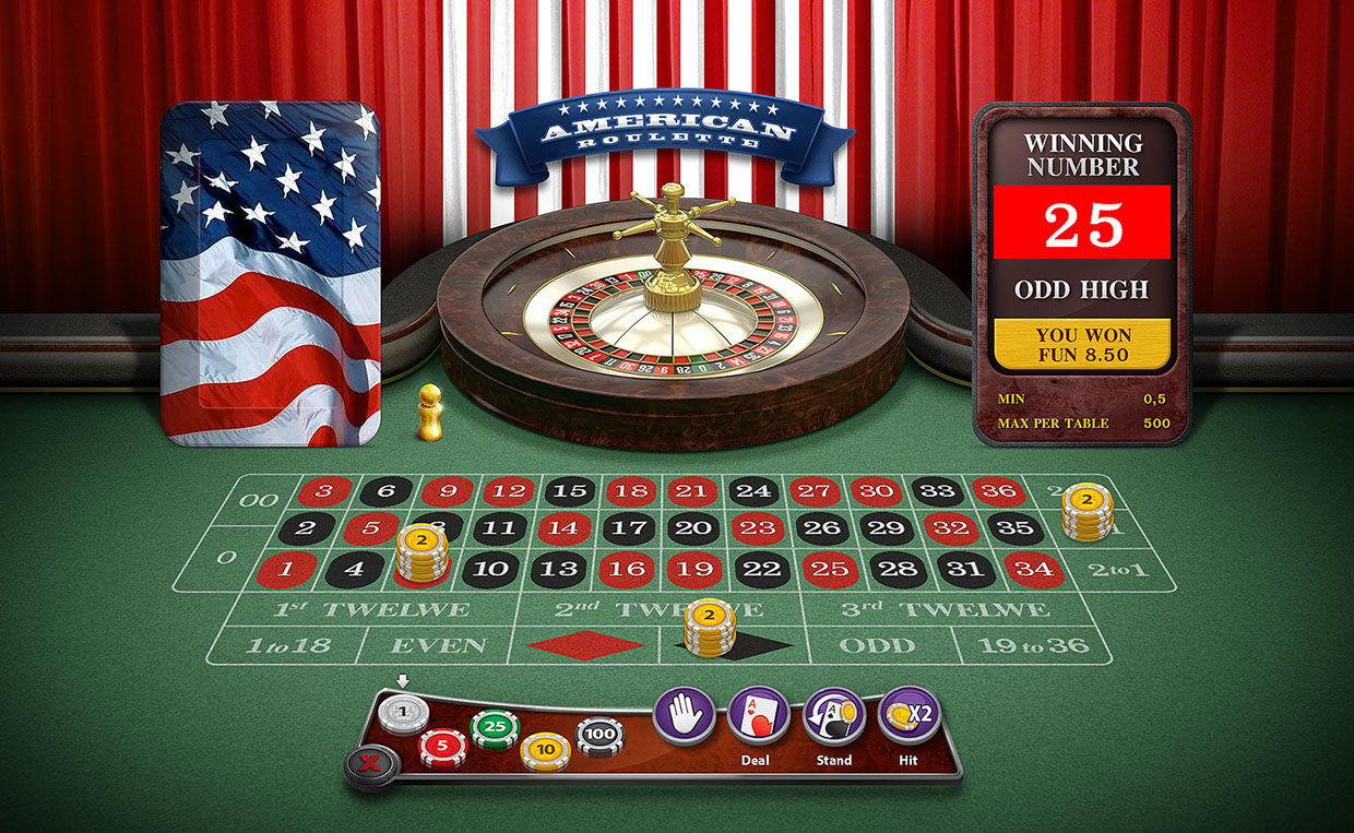 Цель игры в Американскую рулетку заключается в том, чтобы правильно угадать слот, в который приземлится запущенный шарик.