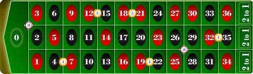 По сути, делая ставки, вы перекрываете практически полностью все игровое поле рулетки, остается лишь только три незакрытых ячейки. Шанс выигрыша при таком раскладе очень велик. Остается только лишь ждать, когда выпадет ЗЕРО, для того чтобы получить выигрыш.