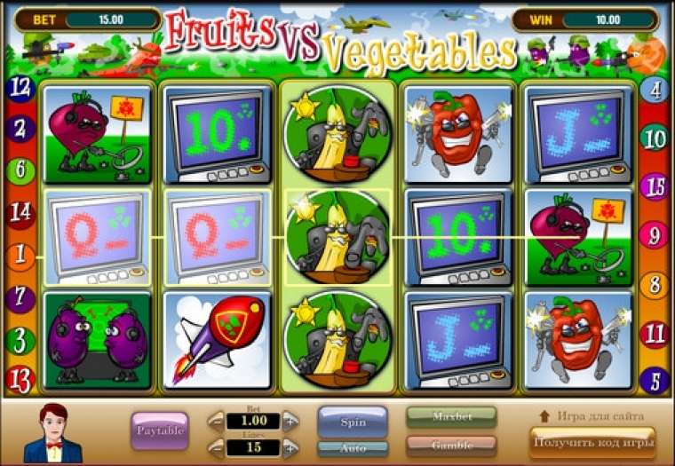 Новинка видеослота называется Fruits vs. Vegetables и уже по его названию можно догадаться, что в сюжете речь пойдёт о забавной борьбе между овощами и их непримиримыми соперниками фруктами.
