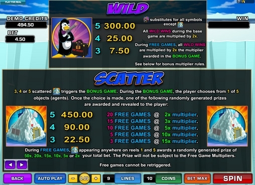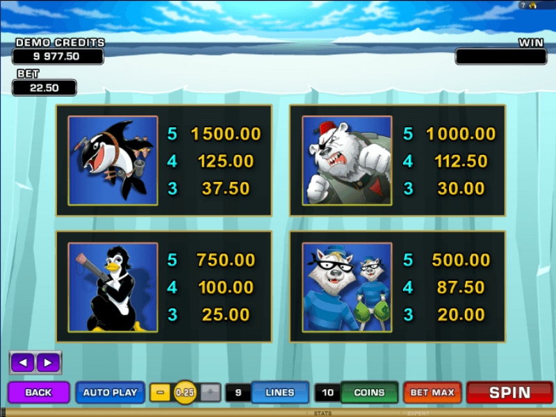 В этом исключительно юмористическом слоте, арктическим пингвинам, в качестве секретных агентов, достается весьма ответственное задание.