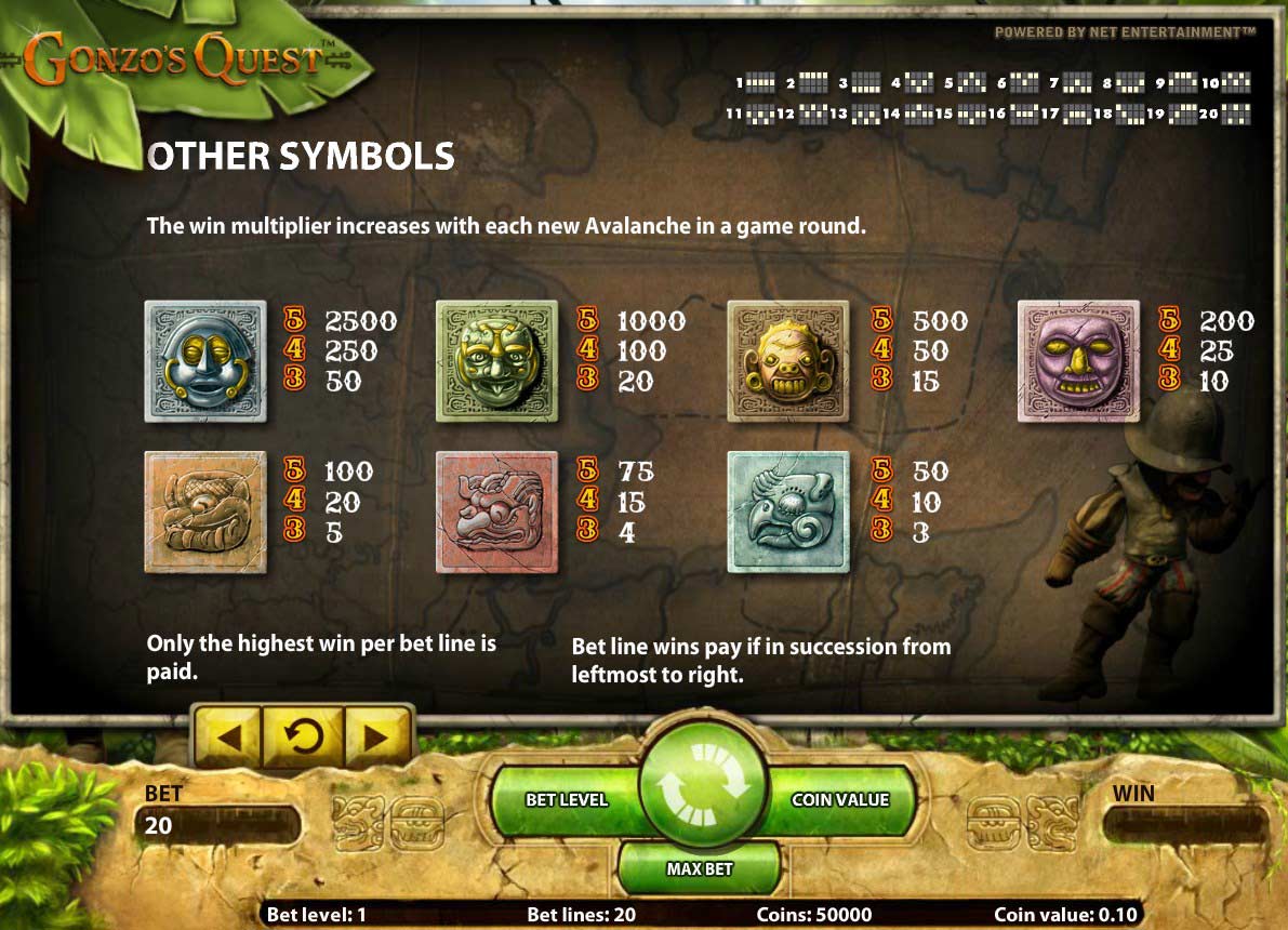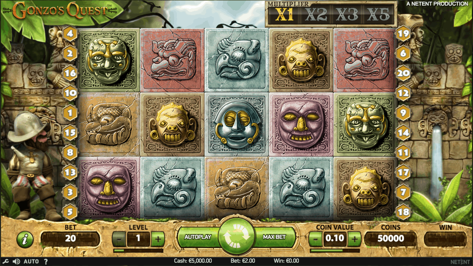 Видеослот имеет классическую настройку, которая состоит из пяти барабанов и двадцати линий выплат. Главный персонаж этой игры Гонзо, испанский конкистадор.