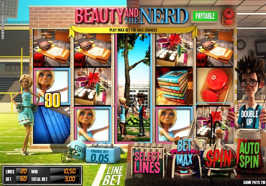 Beauty and the nerd состоит из пяти барабанов и двадцати активных линий. Игрок может сам выбрать количество линий для игры. На линию можно поставить от одной до пяти монет (достоинством от пяти центов до пяти евро).