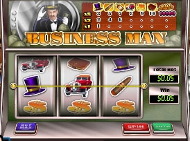 Игровой автомат «Бизнесмен» включает в себя три барабана, которые совершают свои движения без зависимости друг от друга по линии. Самая большая ставка здесь может равняться 10ти долларам. Не радует только то, что данный слот не имеет бонусных игр и возможности выбора игровой линии, хотя на популярность автомата это не особо влияет. Кстати, максимальный выигрыш, который способен выдать «Бизнесмен» может быть равен 100 тысячам «зеленых». Привлекательно, не так ли?