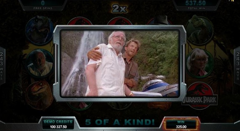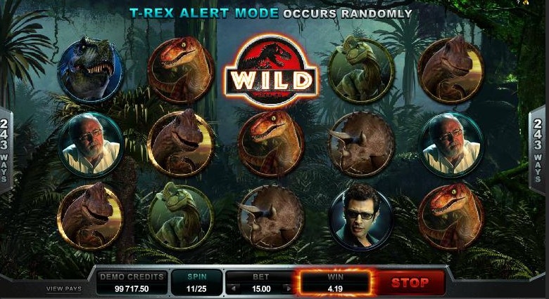 Игровой автомат с раскладкой 5x3 имеет 243 линии выплат. Звуковые эффекты и графика игрового автомата создают ощущение эскапизма и прекрасно погружают в атмосферу фильма. Про динозавров сняли много разных фильмов, но Jurassic Park выделяется на их фоне. Он заслуженно стал культовым фильмом и получил, если помните, несколько премий американской киноакадемии. Игровые слоты подхватили эстафету, правда призы им выдаёт Global Gaming Awards. Динозавры в Парке Юрского периода выглядят реалистично, а Ти-Рекс может и сейчас напугать многих, несмотря на то, что фильм снят более двух десятков лет тому назад. Над фильмом в свое время работали сильнейшие специалисты «Industrial Light & Magic», так что неудивительно, что спустя столько лет, их изображения до сих пор используются в игровом автомате. Скрупулезная работа специалистов над фильмом теперь еще дополнена скрупулезной работой разработчиков игрового автомата, которые создали продукт, в котором и графические, и звуковые элементы прекрасно сочетаются.