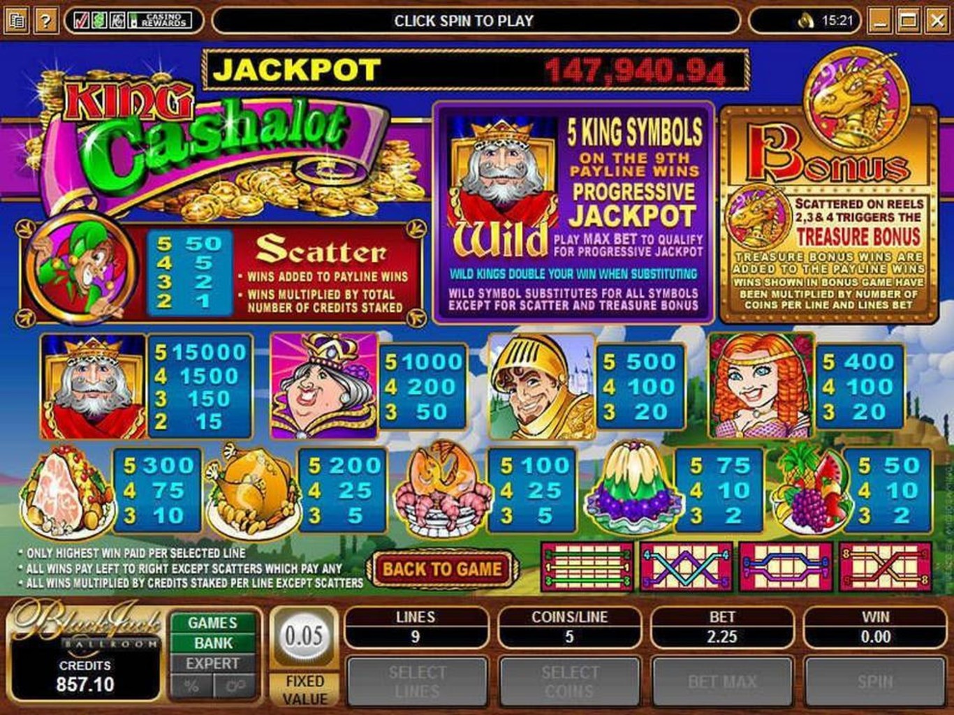 Игровой автомат King Cashalot был выпущен в 2004 году и долгое время его прогрессивный джекпот не мог достигнуть отметки в один миллион долларов. Игрокам удавалось сорвать куш намного раньше этой суммы.
