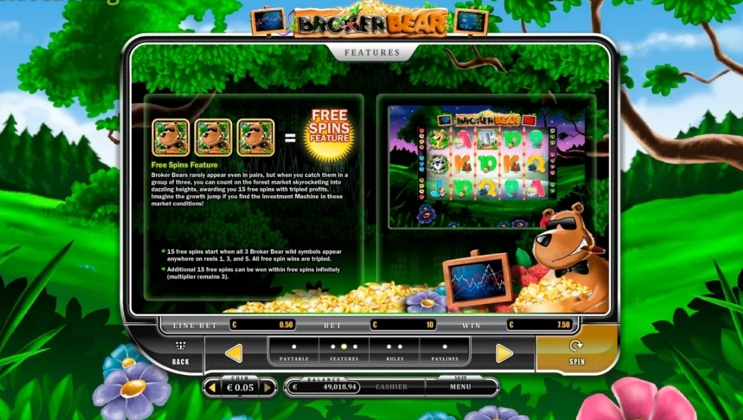 Всем гемблерам предоставляется возможность помочь медведю получить брокерскую лицензию вместе с ним сколотить и свое состояние, преодолевая все инсайдерские махинации и рискованные сделки в игровом автомате Broker Bear.