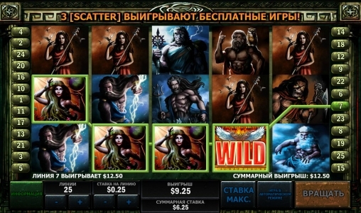 Непревзойденный драйв пользователю обеспечат пять барабанов и двадцать линий выплат. В игре предусмотрены еще и многочисленные бесплатные спины, бонусные раунды. Накопительный джек-пот в игровом автомате Битва богов отсутствует.