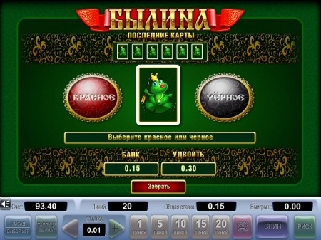 Видео слот «Былина» не оснащен какими-либо бонусными играми, увеличить выигрыш можно только с помощью риск-игры.