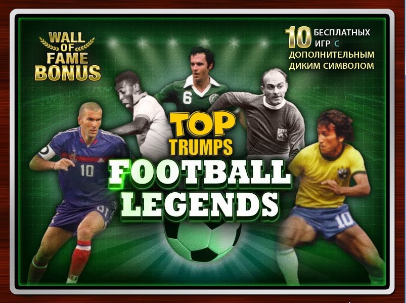 «Легенды футбола» - это игровая машина, имеющая футбольную тематику, которая состоит из пяти барабанов, пятнадцати линий выплат из категории NovelSlots с символами «разброс» и «дикий», бонусным турниром «Стена славы», бесплатными спинами и Gamble-опцией.