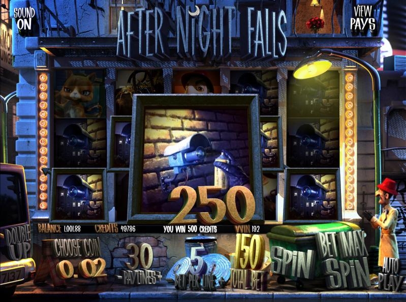 Игровое поле видео слота After Night Falls состоит из пяти барабанов с тридцатью линиями. Количество линий предоставляется выбрать игроку. На одну линию можно поставить до 5 монет (номиналом до одного доллара). Самая высокая ставка на один оборот равна 150 долларам.