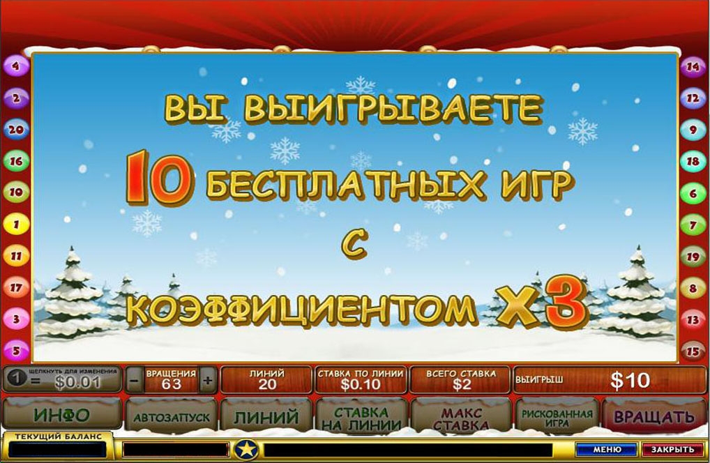 Рождественский видеослот имеет пять барабанов и двадцать линий выплат.