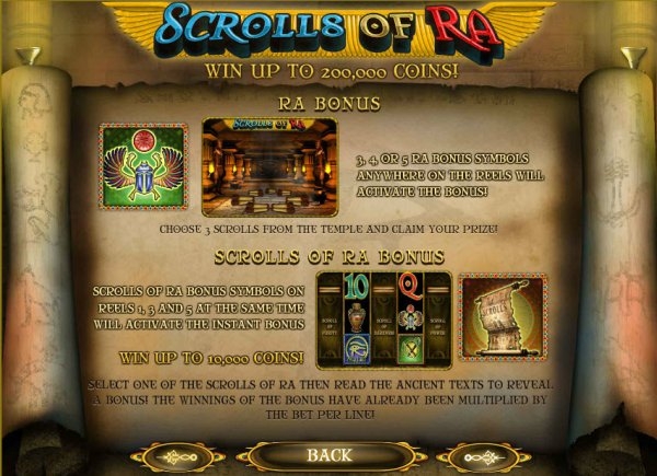 Как видим, слот "Scrolls Of Ra" предоставит вам не только множество возможностей сорвать куш, но и подарит положительные эмоции и приятные ощущения от самой игры.
