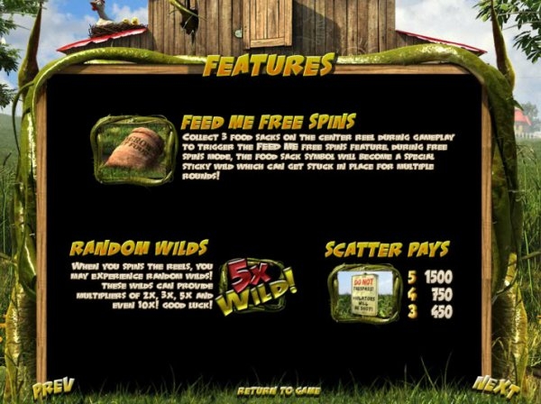 Видео слот оснащен раундом бесплатных спинов. Эта игра активируется в том случае, если на экране появятся три символа изображающих мешки с едой (расположение на игровом поле не имеет значения, главное, чтобы этих символов было три).