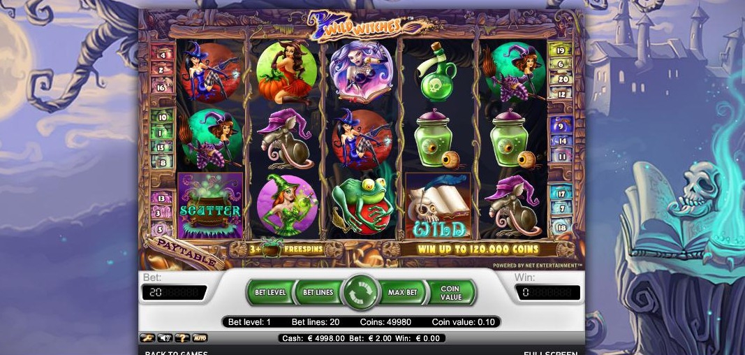 Дикие Ведьмы – это пяти барабанный не прогрессивный слот от компании Net-entertainment с 20-ю линиями выплат, кроме того у автомата имеется: дикий символ, рассыпной символ, множитель, бесплатные вращения и джек-пот размером в $40,000 долларов.