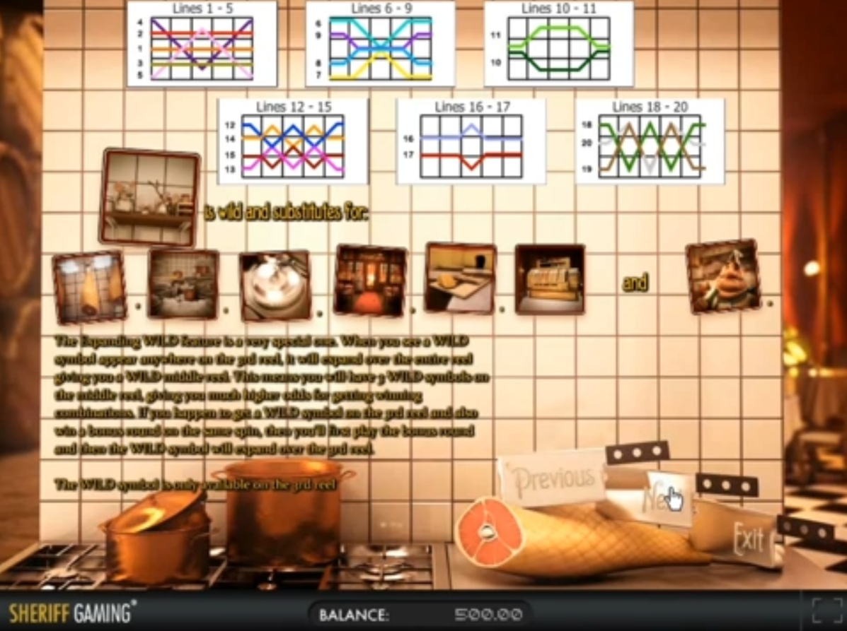 Этот игровой аппарат оформлен в виде небольшого местного ресторанчика и имеет такие игровые качества:
