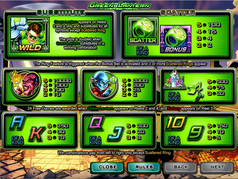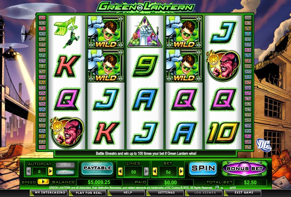 Популярный любимец американской детворы, супер-герой Зелёный Фонарь, испытал свежий пик известности с премьерой блокбастера и послужил идеей для компании Cryptologic разработать по фильму видеослот Green Lantern.