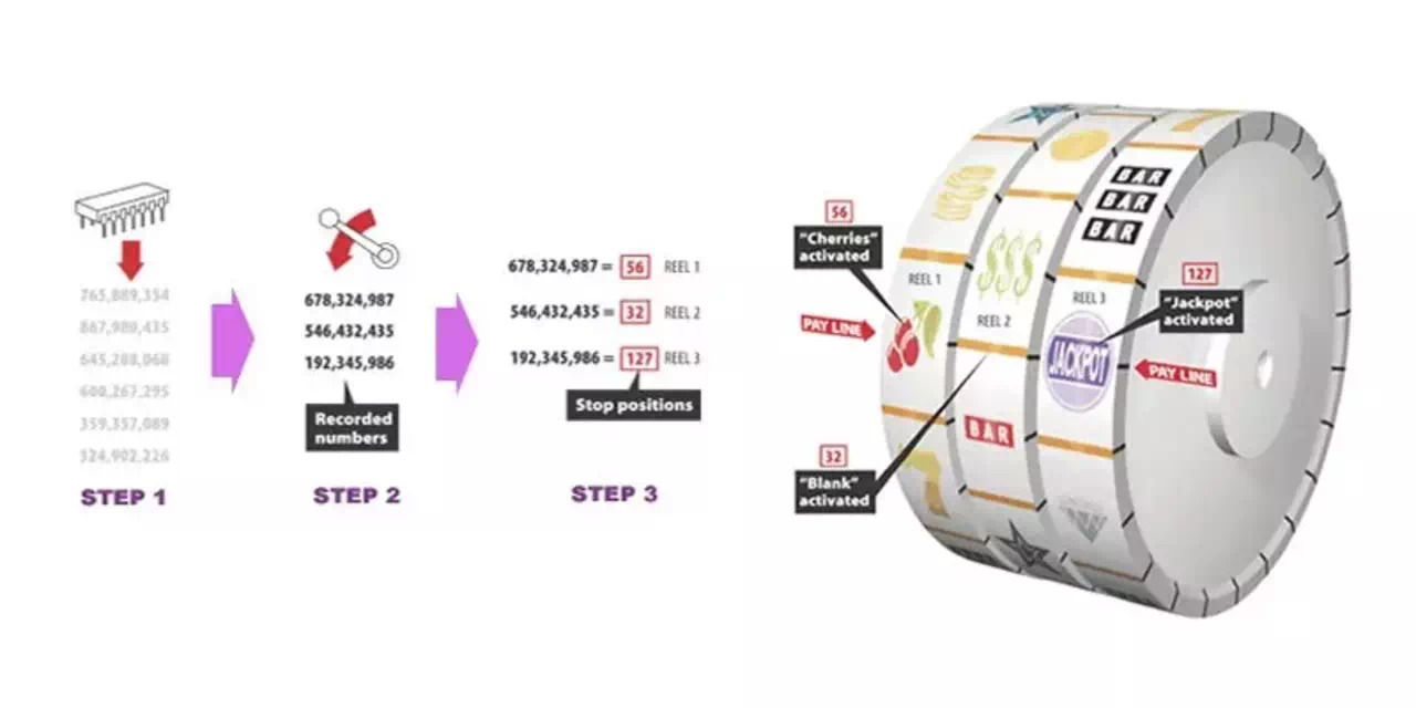 Любое из символьных изображений, которые мы наблюдаем на экране игрового автомата, может несколько раз подряд появляться в одном и том же месте или наоборот – вообще не появляться там. ГСЧ такие моменты не отслеживает. На то он и называется генератором случайных чисел.