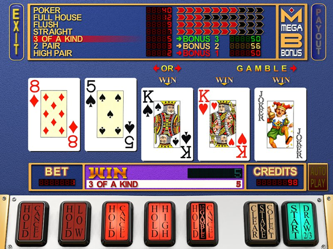 Чтоб закрепить знания видеопокере, рассмотрим еще один пример. У игрока на руках два валета, десятка, девятка и восьмерка. Тот, кто внимательно читал предыдущий абзац, сразу же разберется, что пара валетов вариант еще более выгодный, чем пара четверок и жертвовать ими ни в коем случае нельзя. В целом же, математическое ожидание для карт более высокого достоинства (от восьмерки до валета) возрастает, так как возможными становятся и другие комбинации, а не только стрит.